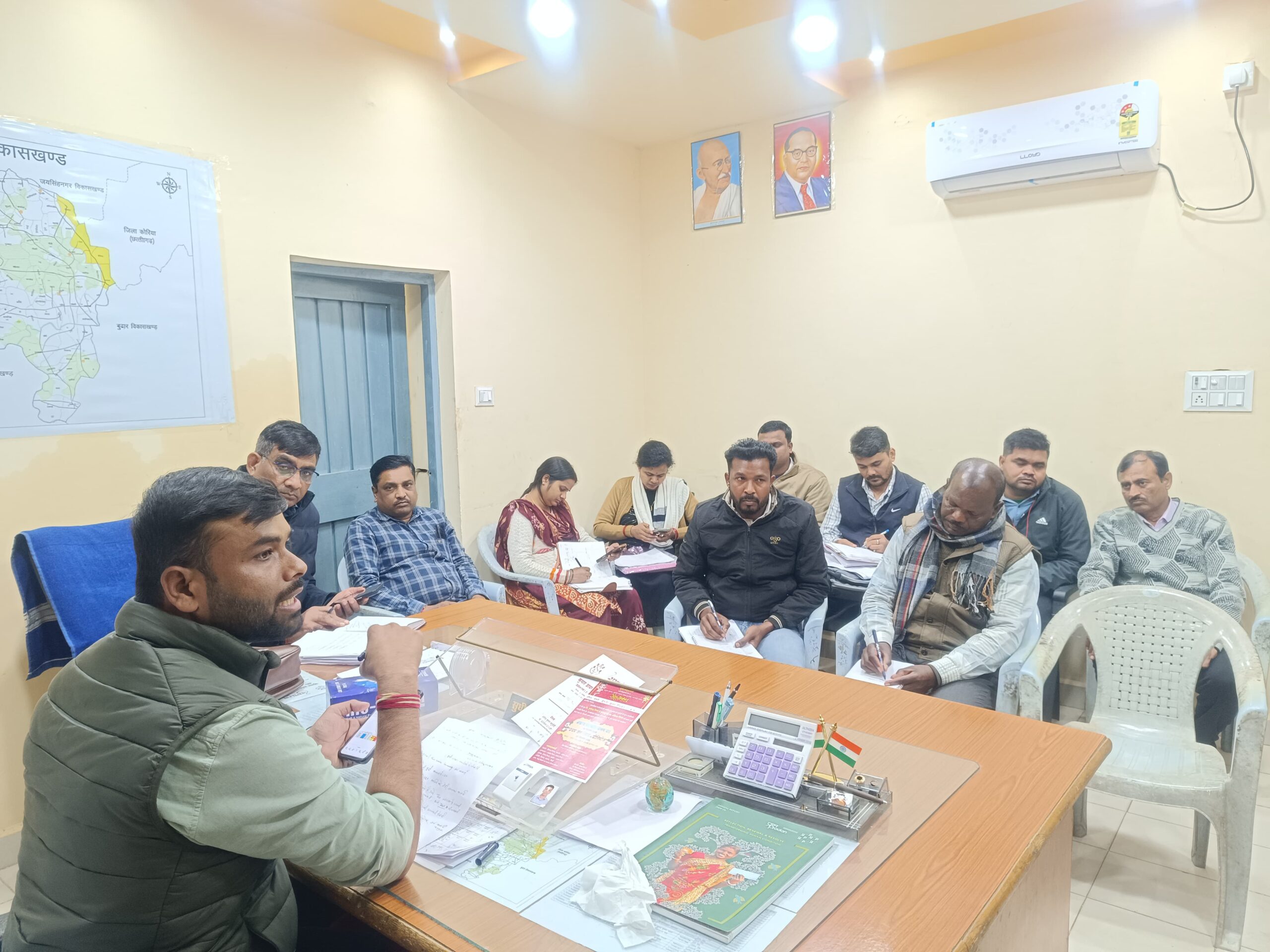 इसी तारतम्य में आज मुख्य कार्यपालन अधिकारी ने सहायक यंत्री, उपयंत्री, पंचायत समन्वय अधिकारी और समस्त कार्यालयीन स्टाफ के साथ एक महत्वपूर्ण समीक्षा बैठक की। बैठक में उन्होंने शासन की महत्वपूर्ण योजनाओं की समीक्षा की और जिन कार्यों में अपेक्षित प्रगति नहीं दिखी, उन्हें लेकर नाराजगी जाहिर की। उन्होंने सभी अधिकारियों को स्पष्ट निर्देश दिए कि योजनाओं में जल्द से जल्द संतोषजनक प्रगति लाई जाए ताकि ग्रामीण जनता को उनका हक मिल सके।